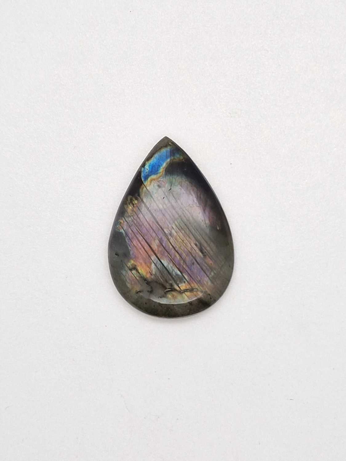 Spectrolite drop shape cabochon 37,5x26x6,3mm.